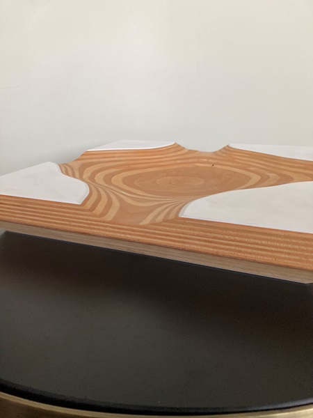 Gemaakt van multiplex met hard toplaag. Dit was een zijwand van een keuken